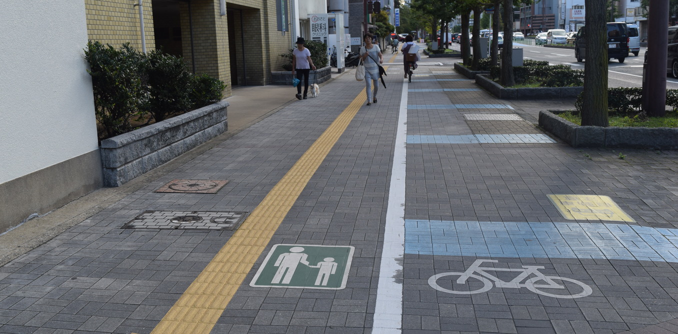 Although they are ubiquitous, Japanese people rarely notice the grooved lines on their pavements. Every footpath that is wide enough seems to have these extruding lines. They inhibit the smooth movement of prams, wheelchairs and trolleys. In the rain or snow, they can be a hazard for the cyclists who share pavements with pedestrians. They are expensive to maintain.