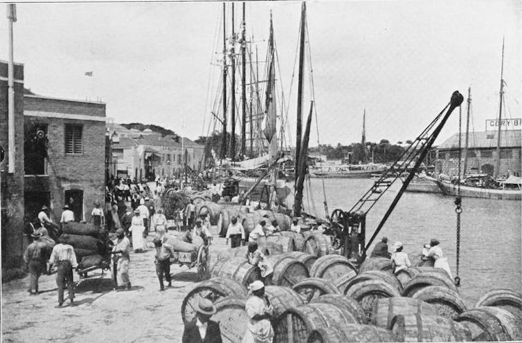 Shipping sugar, Bridgetown, Barbados, 1909. Allister Macmillan, Schomburg Center for Research in Black Culture, Jean Blackwell Hutson Research and Reference Division