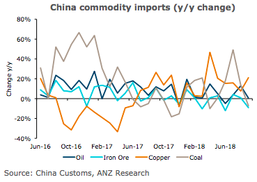 Escalations of trade war worries weighed on China’s commodity imports during the month of September, with volumes for oil, natural gas, coal and soybeans falling from the previous month. On a seasonal basis, growth rates also trended lower, although this may be more reflective of relatively high imports this time last year.