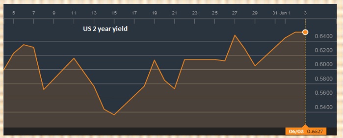 - While Dollar was down heavily yesterday, rate hike expectations were not, which might once again push dollar higher. US 2 year treasury yields were almost unchanged yesterday, in spite of dollar drop. As of now hovering at 0.66%.