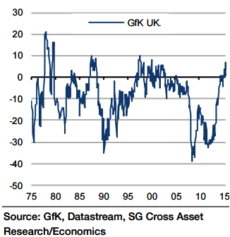 UK is in a sweet spot for the consumer at the moment. The fall in inflation to zero accompanied by the rise in wage growth is leading to a strong increase in real disposable income growth.