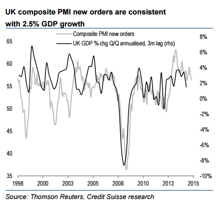 Composite PMI new orders are still consistent with 2.5% GDP growth. Vacancy growth has slowed slightly, but is still consistent with employment growth of 1.5%. With the rate of growth of the workforce being around 0.3%, that means that the unemployment rate should fall further. Part of the recent slowdown in employment growth can be attributed to the election period, with a number of industries (such as homebuilders) reporting that their plans were delayed in the run up to the election (with the latest employment data being the 3-month average up to May).