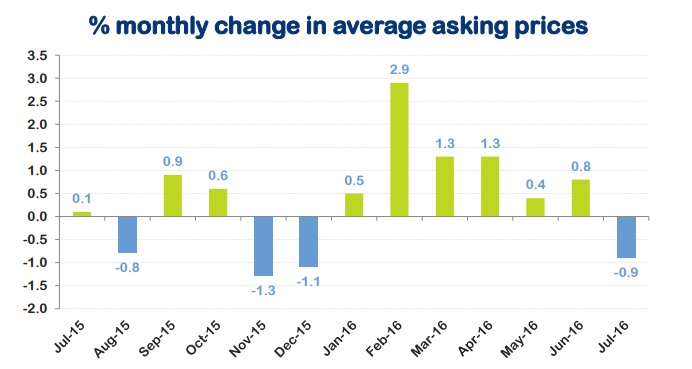 The price of the properties coming to the market for sale has declined by 0.9 percent in July, which means a decline of £2,647. A decline was well within expectations but it is important to note that current decline is still within a broad range, there is nothing dramatic, shocking or devastating in the numbers for the month, despite the fact that Britons voted to exit the European in the June referendum. The buyer enquiries are down by 16 percent in July but it is important to consider that July 2015 was a month of optimism after an outright victory by the conservative party.