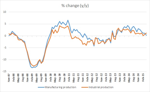 - Manufacturing output increased by 0.2% in April 2015 compared with April 2014. The largest contribution to the increase came from the manufacture of transport equipment.