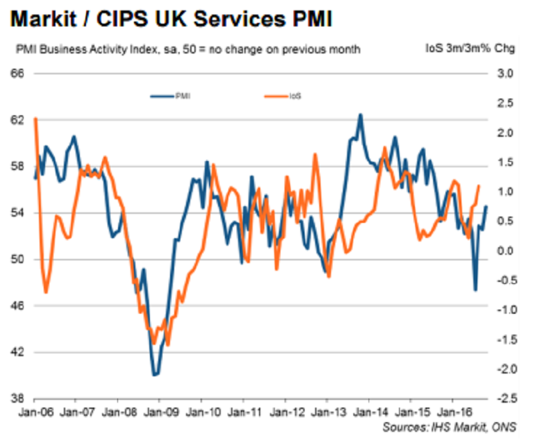 Growth in the United Kingdom’s service sector accelerated during the month of October, beating market expectations; however, it remained well above the 50-point no-change threshold for the third consecutive month in a row, indicating a continued recovery in growth following a contraction in July linked to the EU referendum.