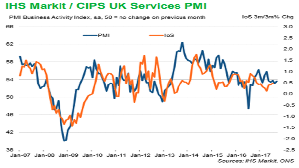 The headline seasonally adjusted IHS Markit/CIPS Services PMI Business Activity Index posted 53.6 in September, up from an 11-month low of 53.2 in August. Looking at Q3 as a whole, growth has eased slightly since the previous quarter (the index averaged 54.3 in Q2, compared to 53.5 in Q3).