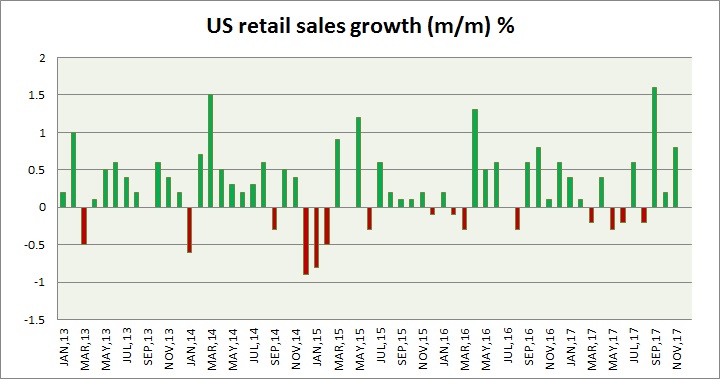 U.S. retail sales statistics for the month of December will be released at 13:30 GMT, today.