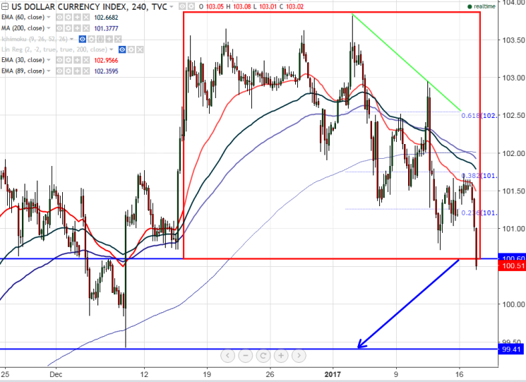 - The U.S dollar index breaks major support at 100.60 and declined till 100.46 at the time of writing. It is currently trading around 100.55.