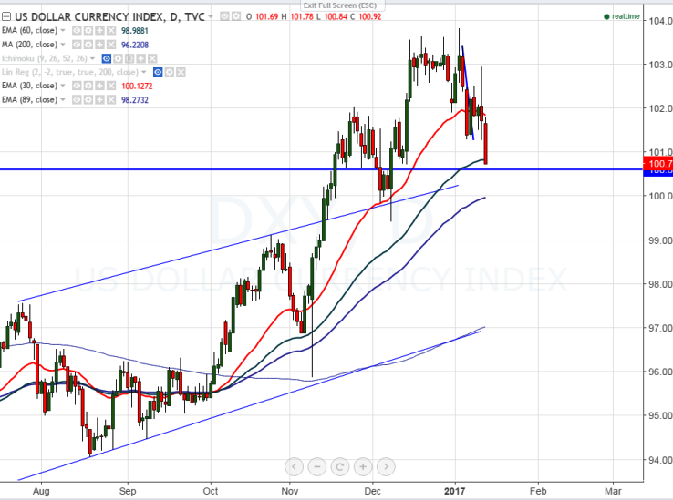 - The U.S dollar index breaks major support at 50% fibo level and declined till 100.76 at the time of writing. It is currently trading around 100.86.