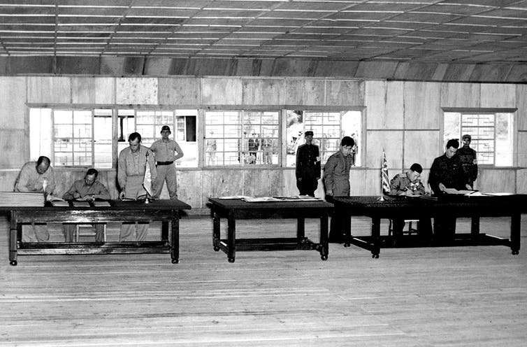 U.S. and South Korean troops still jointly guard the Demilitarized Zone, or DMZ, a 160 mile-long, 2.5 mile-wide strip at the 38th parallel north that originally separated Soviet and U.S. administration after World War II.