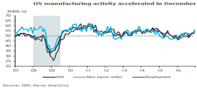 "Overall, this morning’s report indicates that US manufacturing activity ended 2016 on a high note and points to some upside risk to our expectation of a modest rise in manufacturing this year," Barclays commented in its recent research report.