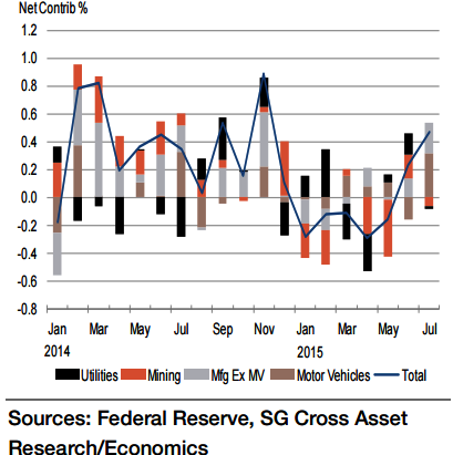 "Buoyed by an anticipated surge in motor vehicle assemblies during the reference period, factory output likely jumped by 0.8% in July, more than offsetting the 0.1% dip recorded in June", says Societe Generale.