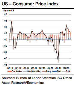 "The overall and core CPIs are expected at 0.2% and 1.8% above their respective yearago levels. Looking ahead, declines in gasoline prices since July could knock 0.3 percentage point off the headline CPI in August", estimates Societe Generale.