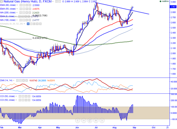 - Technically natural gas is facing strong resistance at $3 and any break above confirms major trend reversal, a jump till $3.32/$3.65/$4.