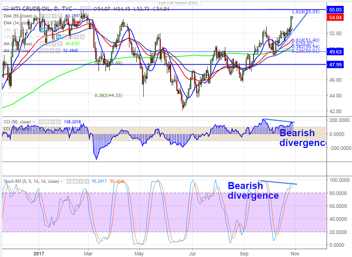 - WTI Crude ‘s major resistance is around $55.15 (161.8% retracement of $52.83 and $49.13) and any break above will take the oil price higher till $58/$60.