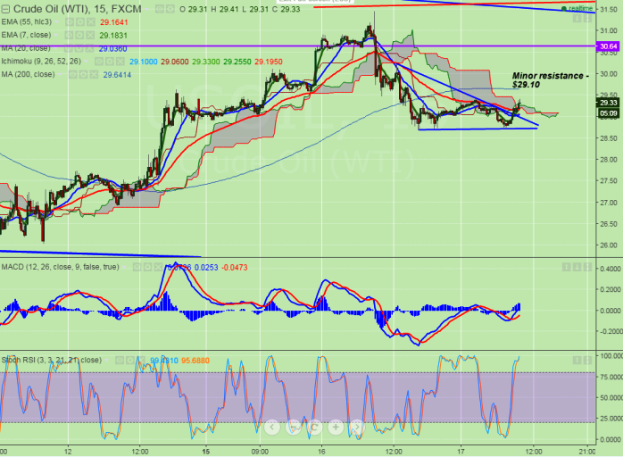 - US Oil has broken minor trend line resistance $29.10 and jumped till $29.38. it is currently trading around $29.31.