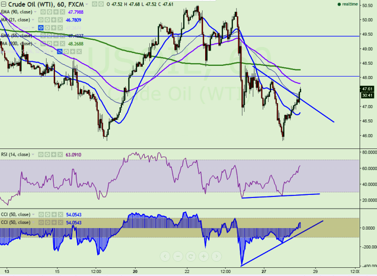 - US Oil has broken minor trend line resistance at $47.30 and jumped till $47.68 at the time of writing.