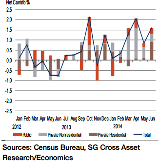"Private residential outlays are expected to have expanded by 2.6% during the reference period, accounting for almost 60% of the anticipated headline gain. For a fourth straight month, business and governmental entities are also expected to have boosted outlays on construction projects", says Societe Generale.