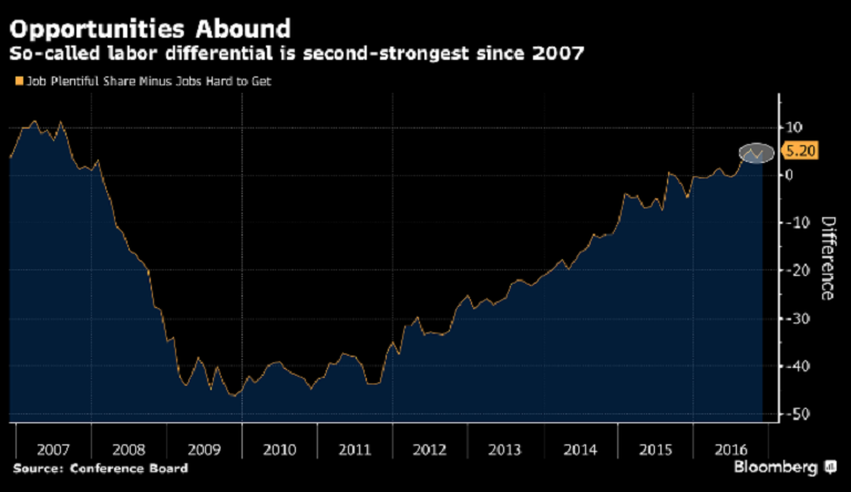Consumer confidence reached a post-recession high as both the present situation rose to 130.3, from previous 123.1 and consumer expectations surged to 91.7, from previous 86.0, showing a strong rebound. The labor market differential, which measures the net share of consumers that saw employment as plentiful, rose to 5.2, from previous 3.6, suggesting that more people in the labor market are finding jobs plentiful than hard to get.