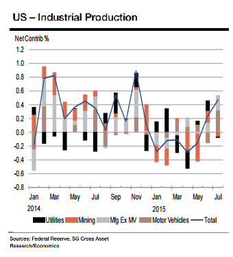 Powered by an auto-led rebound in manufacturing output, US industrial production probably climbed by 0.5% in July - the largest gain since last November. Buoyed by an anticipated surge in motor vehicle assemblies during the reference period, factory output likely jumped by 0.8% in July, more than offsetting the 0.1% dip recorded in June.
