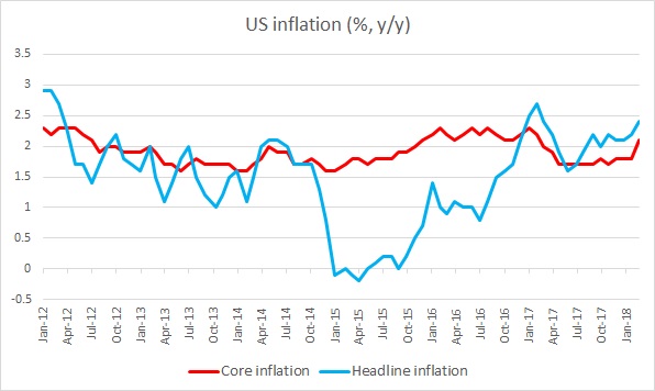 After three hikes in 2017, the U.S. Federal Reserve forecasted three more rate hikes in 2018. FOMC has hiked once in March and the market is currently pricing the second hike in June and the third hike in September. The actual hikes and the path forward would depend a lot on the actual inflation readings.