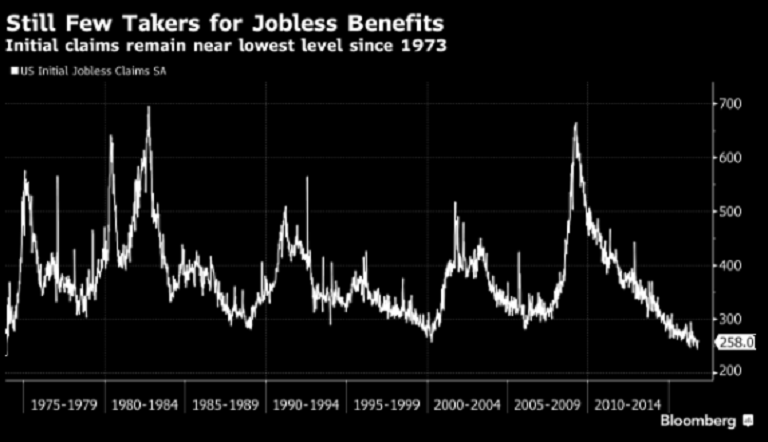 Initial jobless claims in the United States fell to near 4-decade low during the week ended October 22, as employers remain unwilling to part with workers. Also, the data strengthened the case for a December interest rate hike by the Federal Reserve.