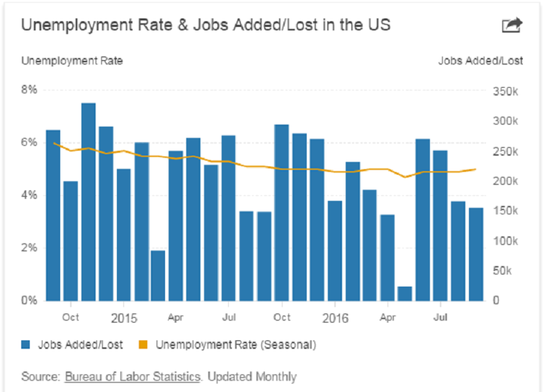 The U.S. jobless rate rose slightly to 5.0 percent in September, from 4.9 percent in August, defying expectations for no change, data released by the US Labor Department showed Friday. Also, the U.S. economy had a net gain of 156,000 jobs in September, the report showed.