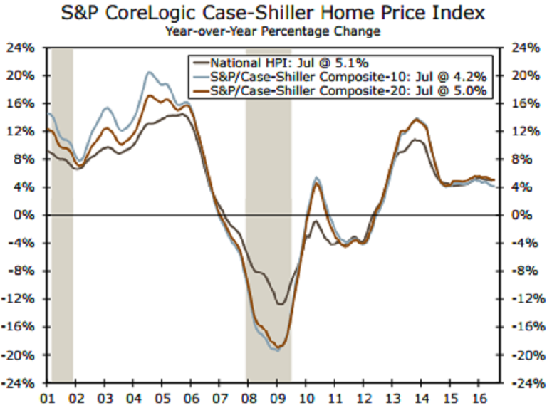 The United States national home prices edged higher during the month of July, strengthening probabilities of a December interest rate hike by the Federal Reserve. However, price appreciation in the 20-City Index has shown signs of cooling off.