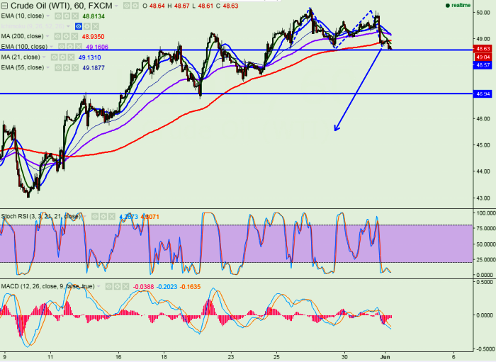 - Technically any break below $48.60 will drag the US oil till $46.60/$45 in short term.