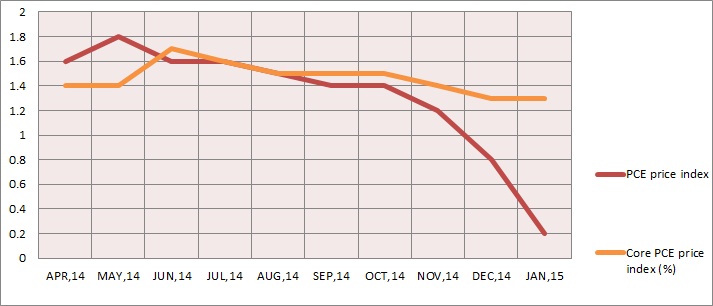 - PCE deflator had been gaining last year, however started going down in latter half of the year as oil price fell close to 50%. In January PCE price index grew just 0.2% YoY but core PCE deflator remained at 1.3% YoY. PCE deflator path is explained in chart.