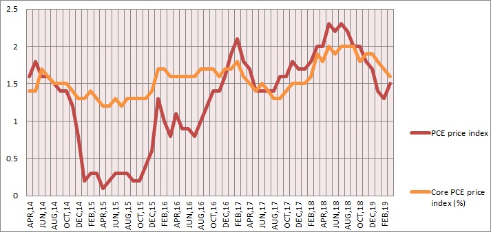 - PCE price index or PCE deflator is the Fed’s preferred measure of inflation indicator. So this gauge is of extreme importance as the Federal Reserve members will be closely monitoring inflation for subsequent hikes. Fed has increased interest rates by 25 basis points thrice in 2017 and four times in 2018 and reduced its forecast from two hikes to no hikes n 2019. However, as the Fed is in a wait and watch mode, the actual numbers of hikes would be very much dependent on actual inflation.