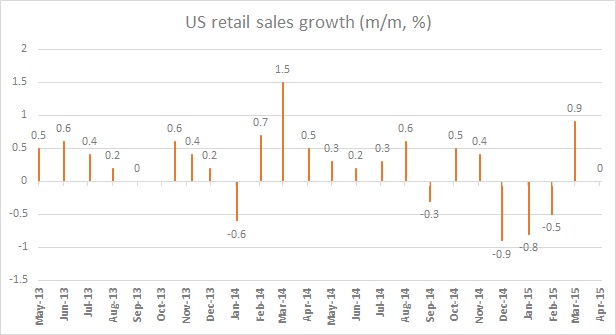 - In April retail sales excluding autos grew by 0.1%, while headline figure failed to grow at all. Today market is expecting solid growth in May, with headline figure growing 1.1% on monthly basis and sales to grow 0.7% excluding autos.