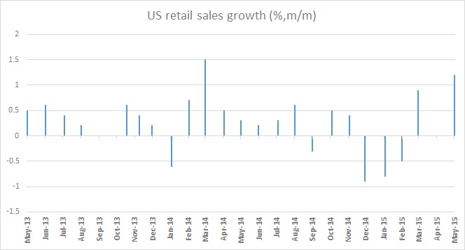 - After failing to grow in April, retail sales grew 1.2% m/m in May.