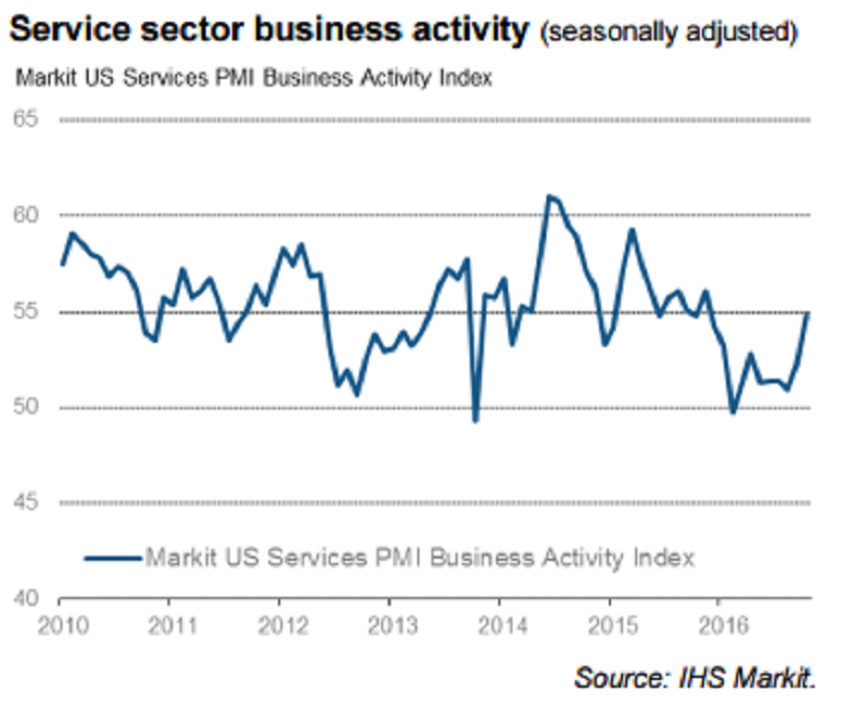 "Indications of stronger economic growth, solid job creation, rising prices and improved business confidence all pave the way for the Fed to hike interest rates again by the end of the year," said Chris Williamson, Chief Business Economist, IHS Markit.