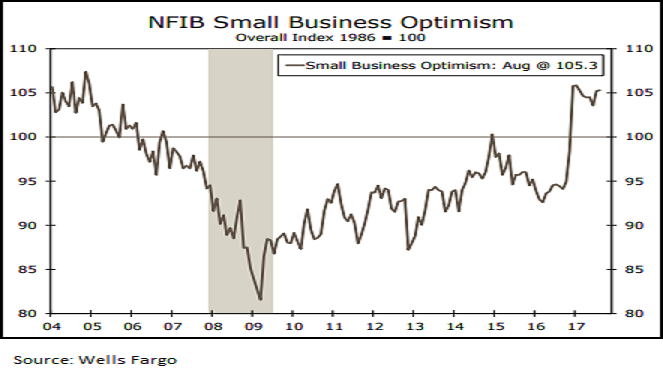 "With sales expected to increase and less regulatory headwinds, a growing number of business owners feel now is a good time to expand, which appears to be bolstering capital spending," Wells Fargo commented in its latest research report.