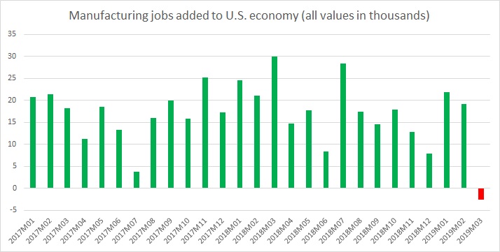 However, since the last quarter of 2018, the U.S. economy has slowed down and March ADP report pose concerns that the slowdown has started hurting the U.S. economy and its manufacturing sector, amid heightened trade tensions.