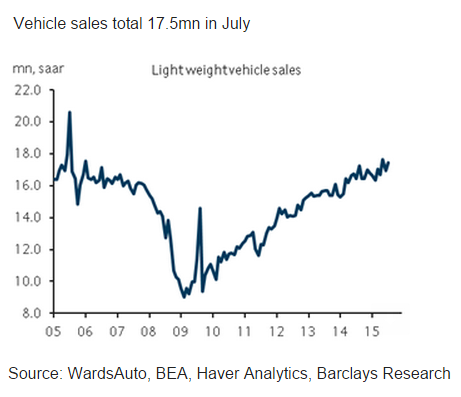 "We view vehicle sales' continued outperformance as sending a strong signal about the underlying health of the consumer," notes Barclays.