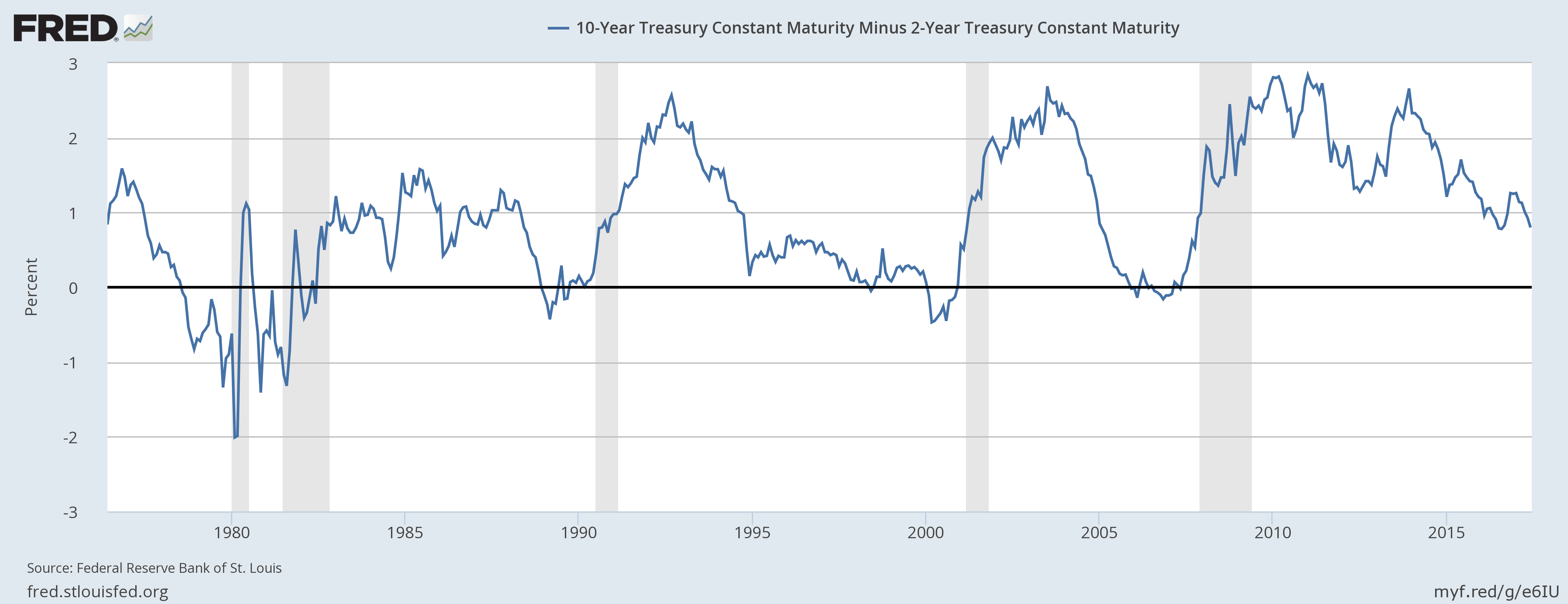 The decline has also raised concerns that a recession could be on the way. Historically speaking, the spread has proved to be a commendable forward indicator of a looming recession. Whenever this spread declines below zero, a recession follows. It correctly predicted the last five recessions since 1976. If the spread declines further, it would reach the weakest point in a decade.