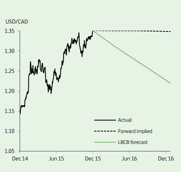 "While the risks are skewed towards further CAD weakness near term, we look for a steady recovery to 1.22 by end 2016", says Lloyds Bank.