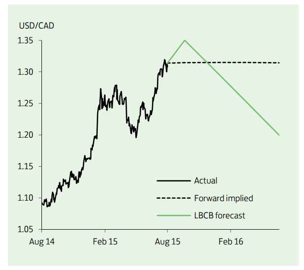 "We look for USD/CAD to drop further and target 1.35 by end Q3. Further out, an anticipated recovery in oil prices should help USD/CAD drop back towards 1.20 next year," says Lloyds Bank.