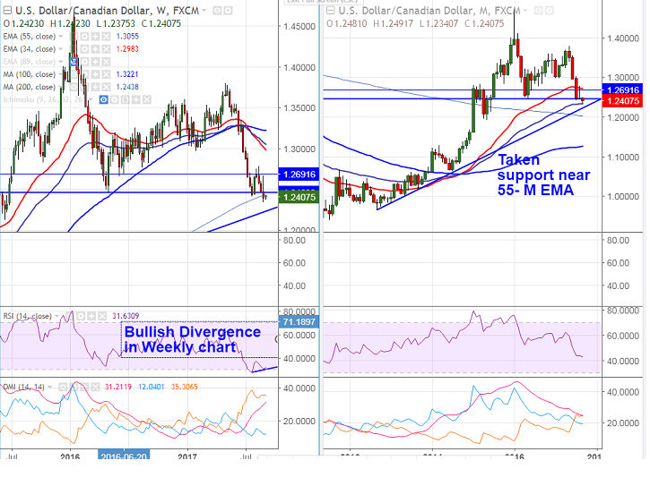 - The pair has taken support near monthly 55- EMA and any further bearish continuation can be seen only below that level. The major near term support is around 1.23200 and nay break below 1.2200 (trend line support)/1.2000.