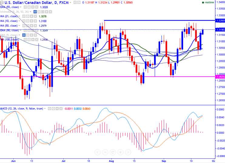 - Loonie has made a temporary bottom around 1.3000 and started to increase sharply from that level .It is currently trading around 1.31985.