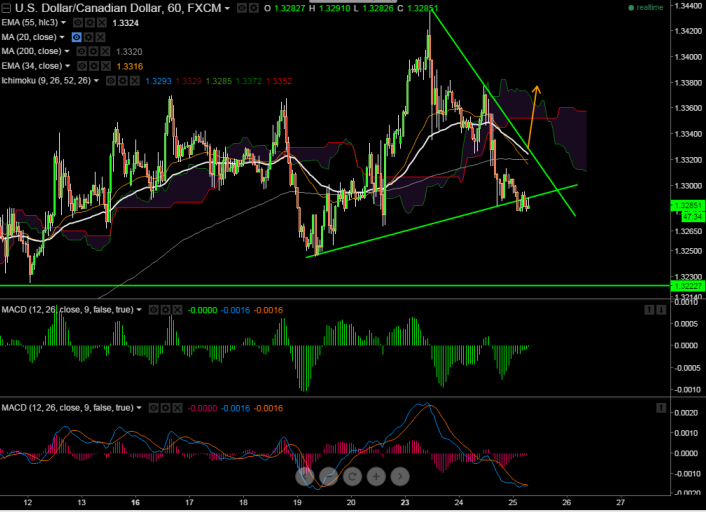 - On the lower side minor support is around 1.3280 and break below targets 1.3245/1.3220.