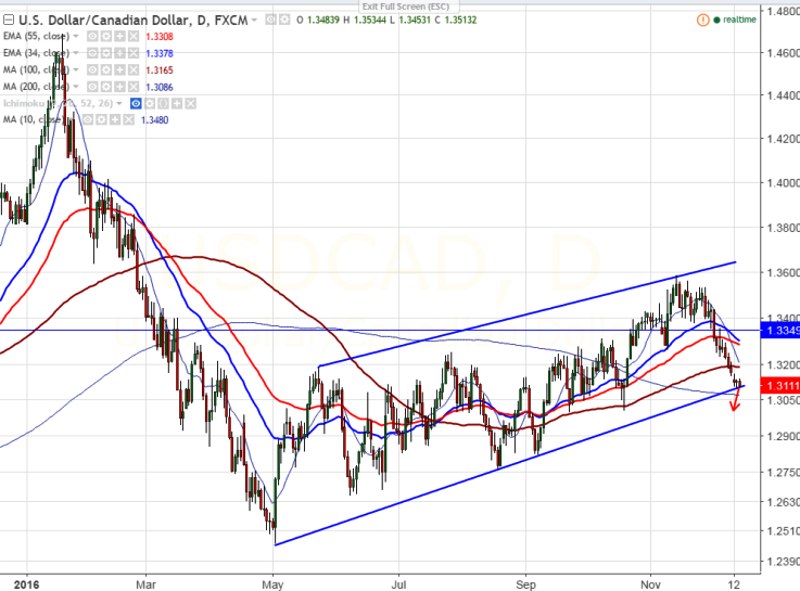 - US Fed Monetary policy meeting is to be held today and markets expect Fed to raise interest rates . The main focus will be on the projections for 2017 and Yellen’s statements .Any break below 1.3100 will drag the pair down till 1.3070 (200- day MA)/1.3000.
