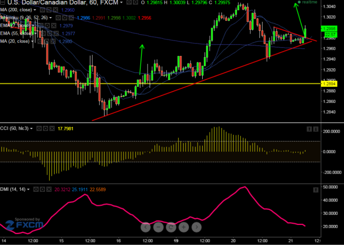 Loonie has made a low of 1.2935 and recovered from that level. It has broken minor trend line resistance 1.2985 and is currently trading at 1.2994.
