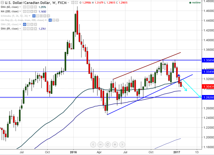 - On the lower side major support stands at 1.3000 and any break below will drag the pair down till 1.2950 (89 – W EMA)/1.2820Sep 2016 low).