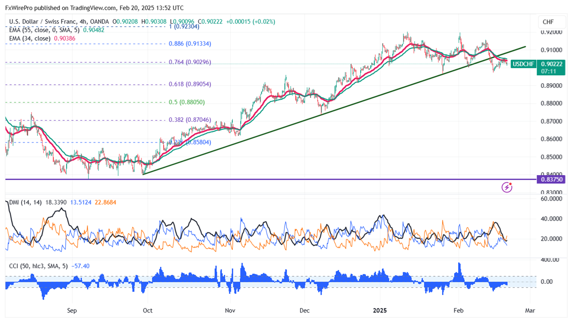 The pair is trading below the 34-EMA and 55-EMA on the 4-hour chart indicating a mixed trend. The immediate resistance is at 0.9070 any break above targets 0.9100/0.9150/0.9200/0.92250/0.9275/0.9030.