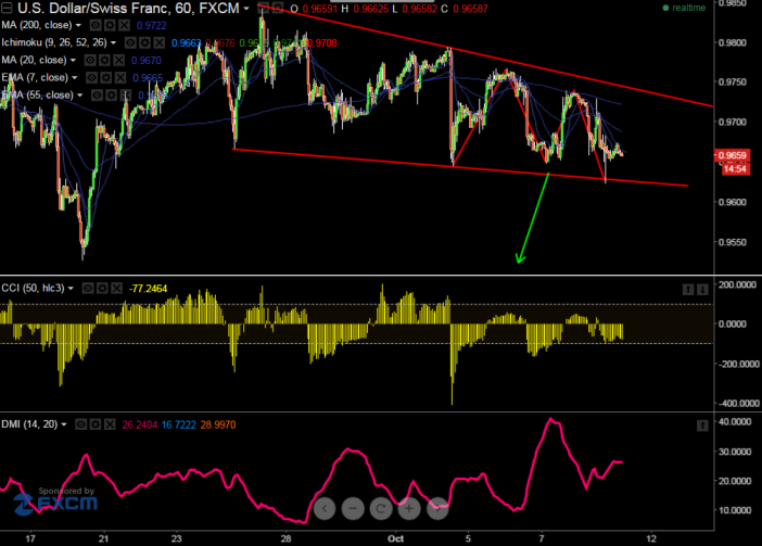 - USD/CHF has declined till 0.9623 after FOMC minutes released overnight shows that there will be further delay in Fed rate hike. It is currently trading at 0.9660