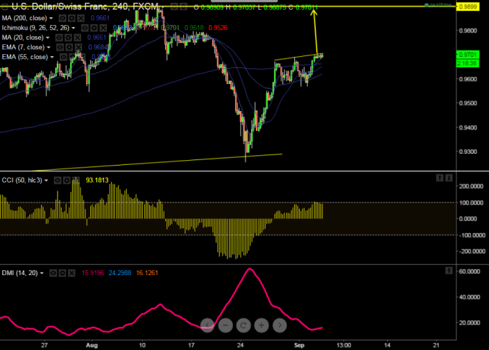 USD/CHF is facing trend line resistance around 0.9700 (trend line 0.9670 and 0.96890) and any break above confirms bullishness, a jump till 0.9764/0.9800 cannot be ruled out.
