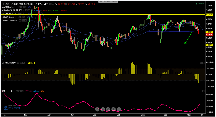 - USD/CHF has broken major support 0.9515 and this confirms short term bearishness, a decline till 0.938/0.9325 is possible .